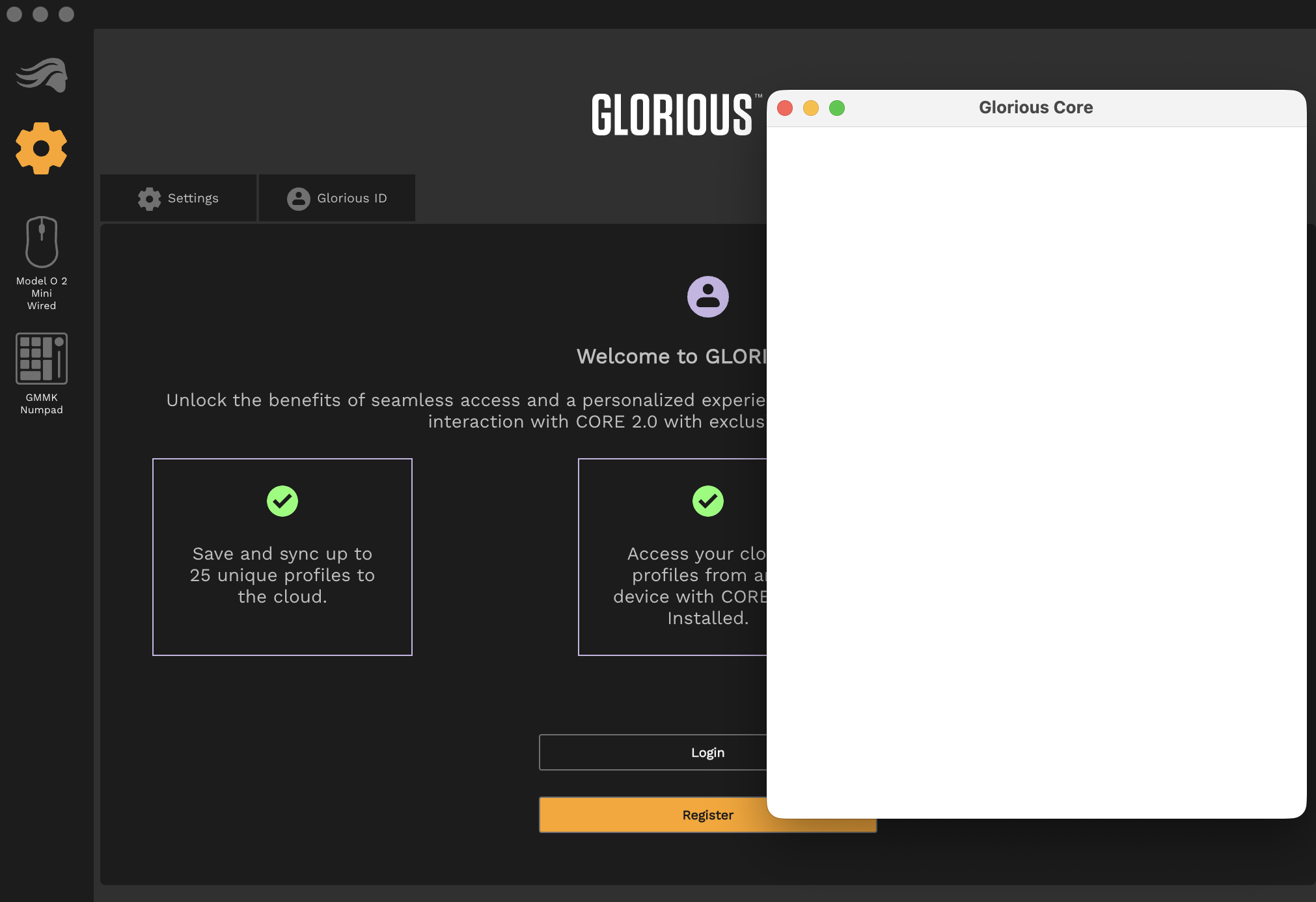 I am on a Mac, and have downloaded the correct version. It just gives that blank sign in screen no matter what I do, and glorious core closes after it says that it has updated but it never does update as after I open it again it goes back to the old version, saying a new version is detected, over and over. Also, it says a glorious numpad is connected to my laptop, when my keyboard is not a glorious keyboard.