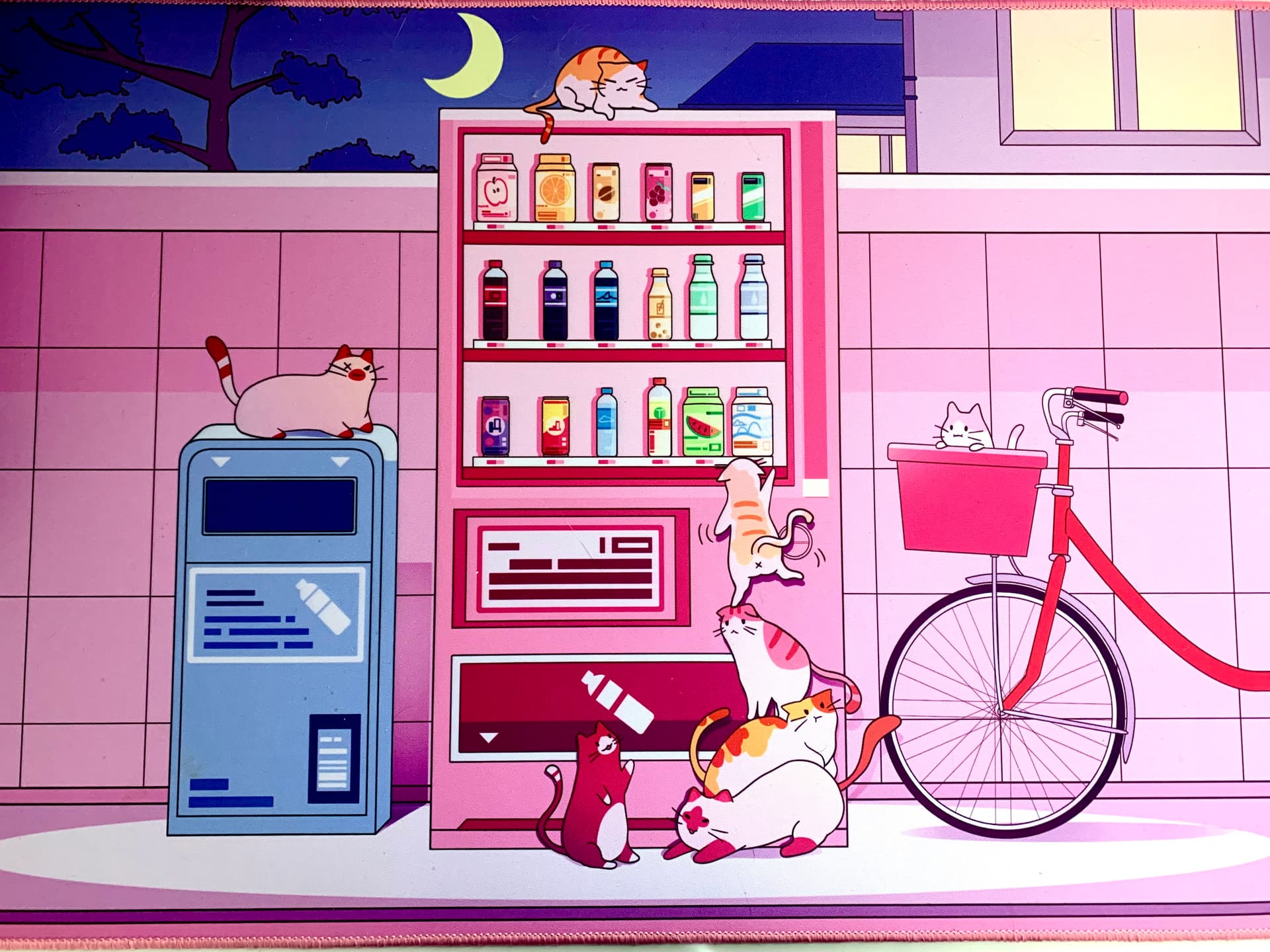 Desk mat is Mekibo Neko-Tomo but unfortunately it’s now sold out.