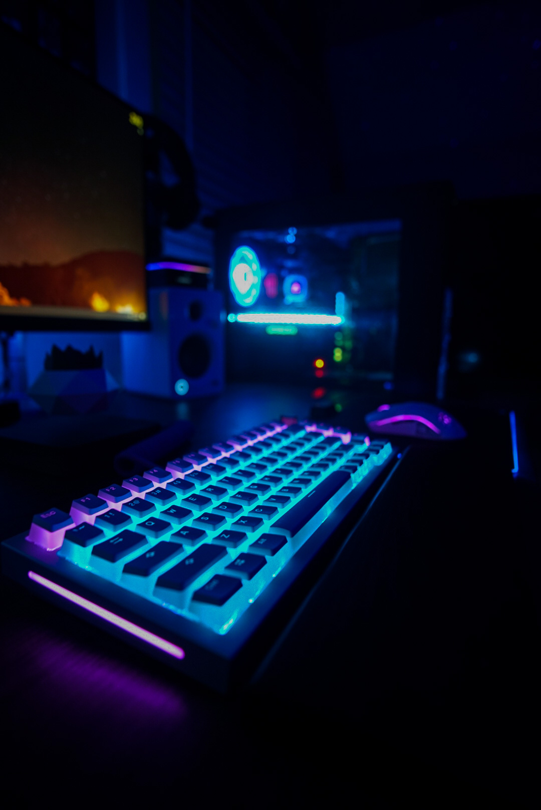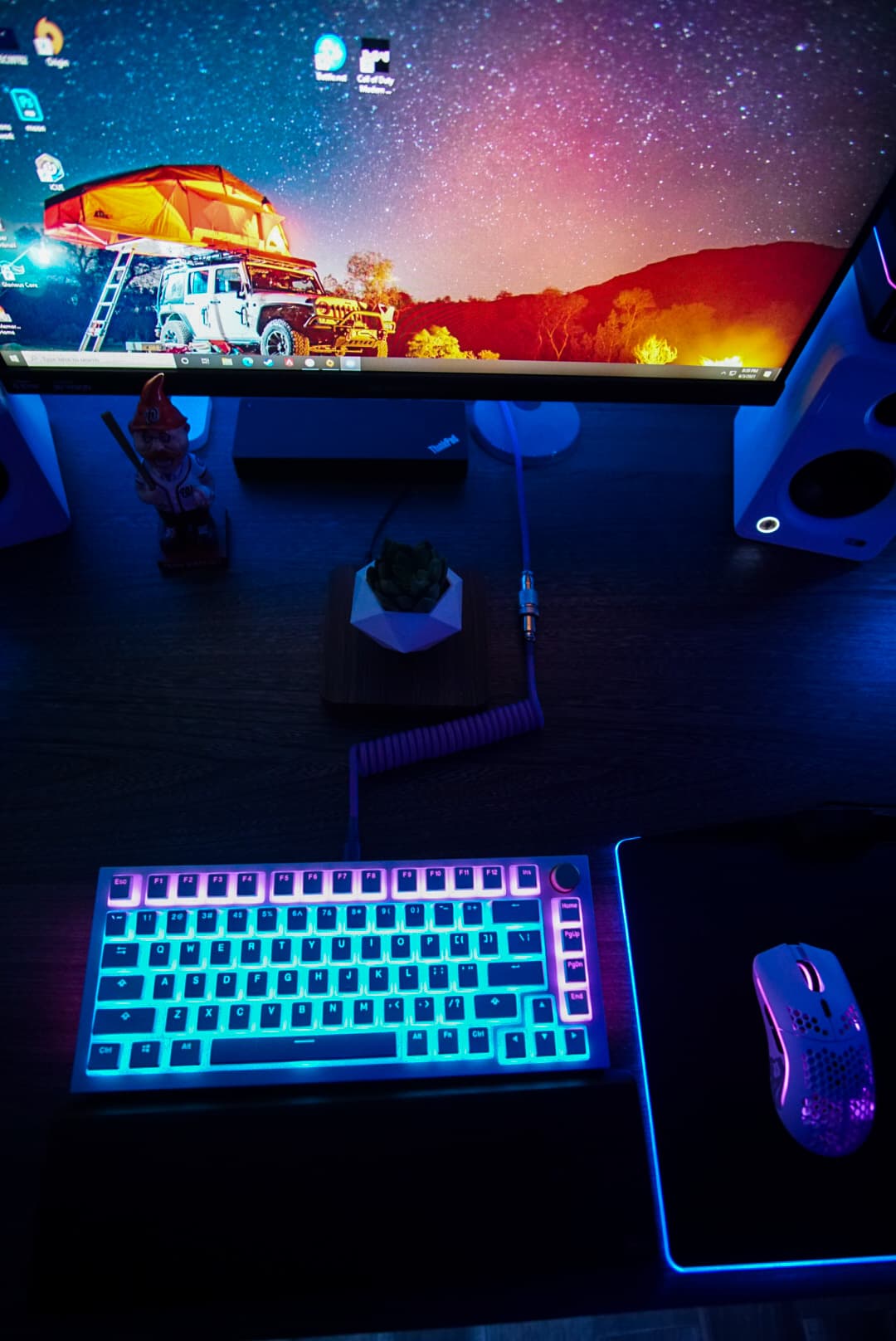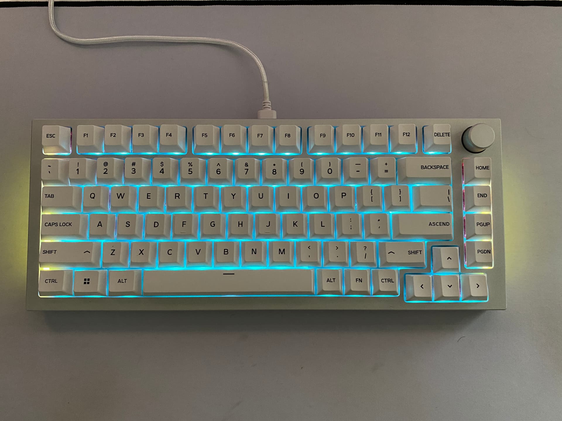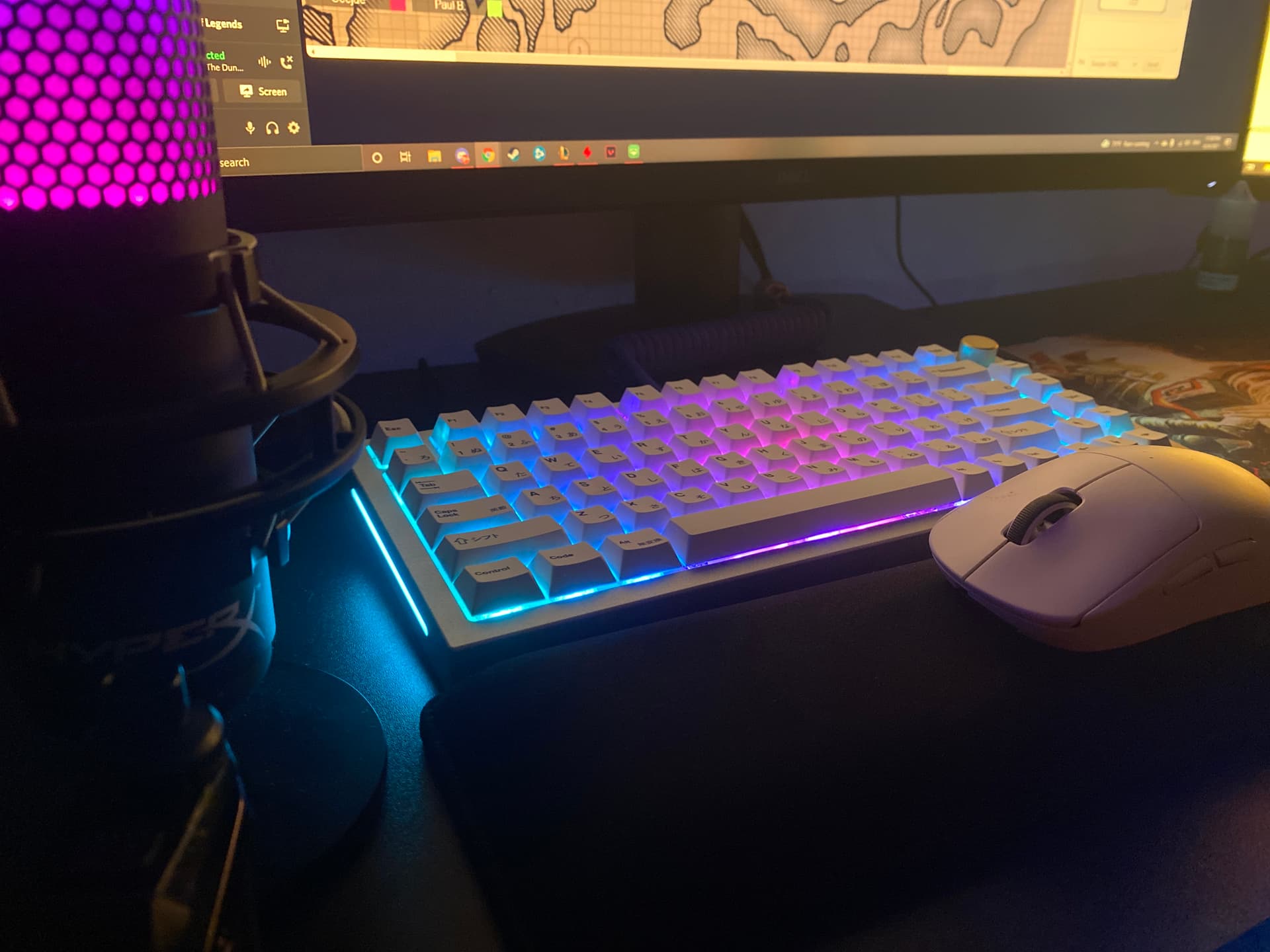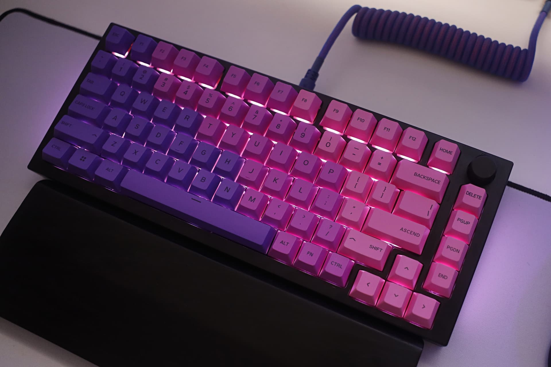 My Gmmk Pro with poly back plate, Everglide aqua king switches, durock v2 stabs, and Drop artifact bloom series glow keycaps(Space bar is from the glorious pudding caps). result is an insanely quiet board with a fantastic rgb effect. wrist rest was a quick 3d print i whipped up one night. i need to take an updated picture since i have a stone wrist rest now! .
