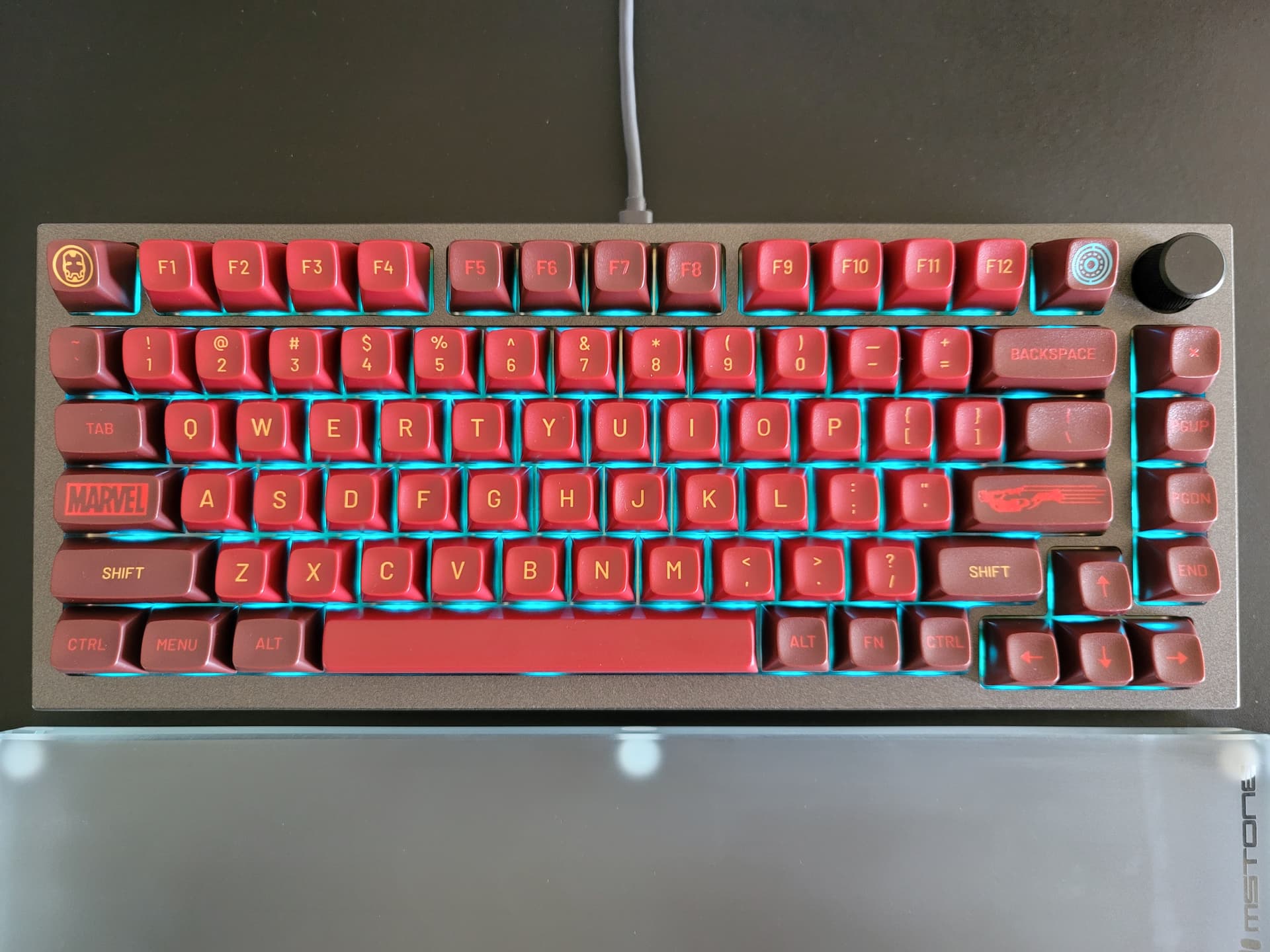 Brass plate and a set of Drop / Marvel Iron Man caps.