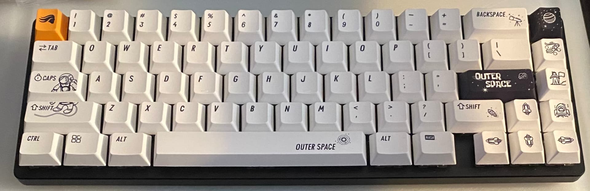I put the whole Outer Space Themed Keycaps on it. I am liking how it’s looking. Might switch the Glorious Novelty Keycap to where the Black Planet Keycap is and vise versa though