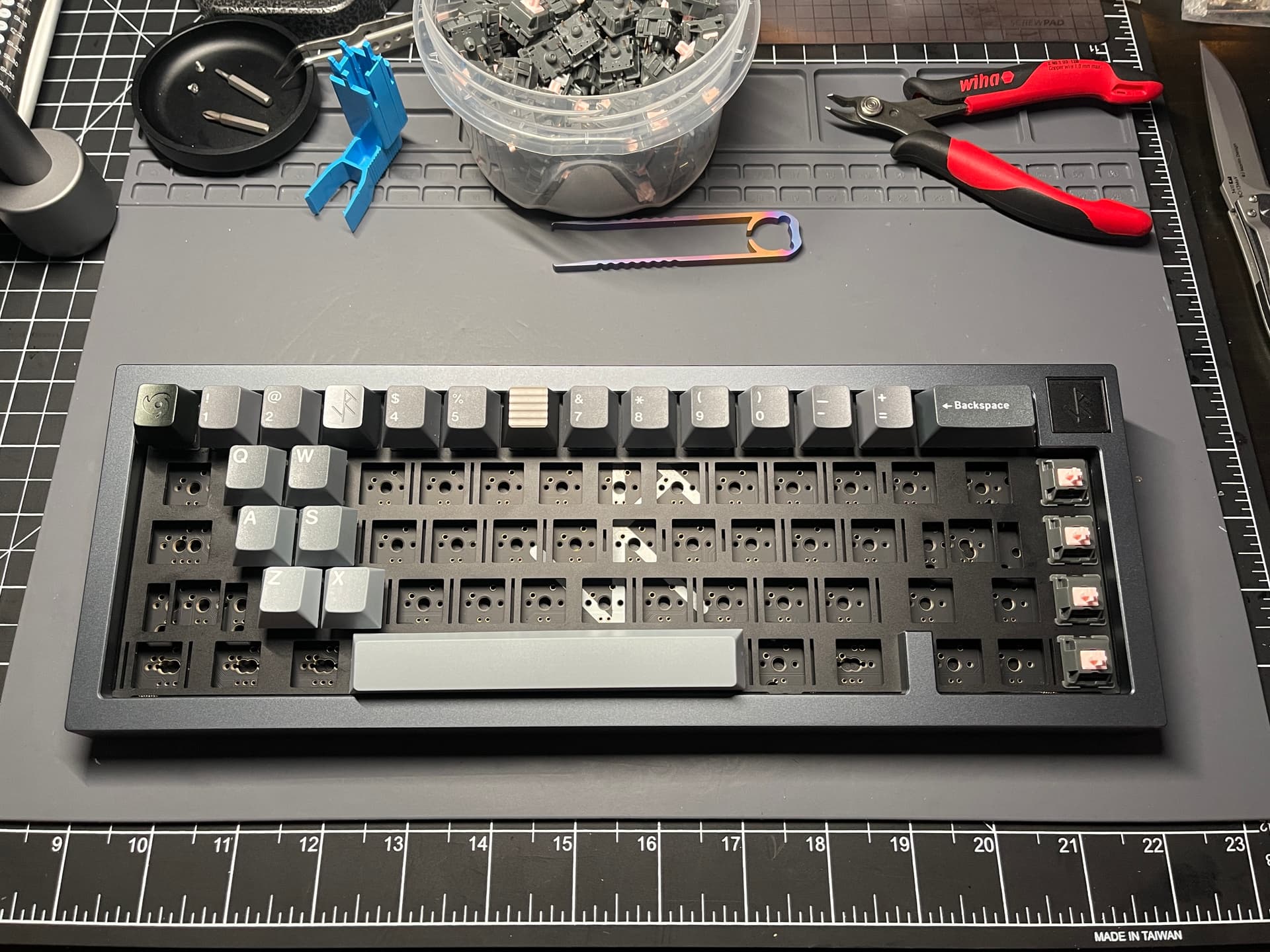 Just mocking things up and looking at the gradient on the keycaps to so how well they go with the board.