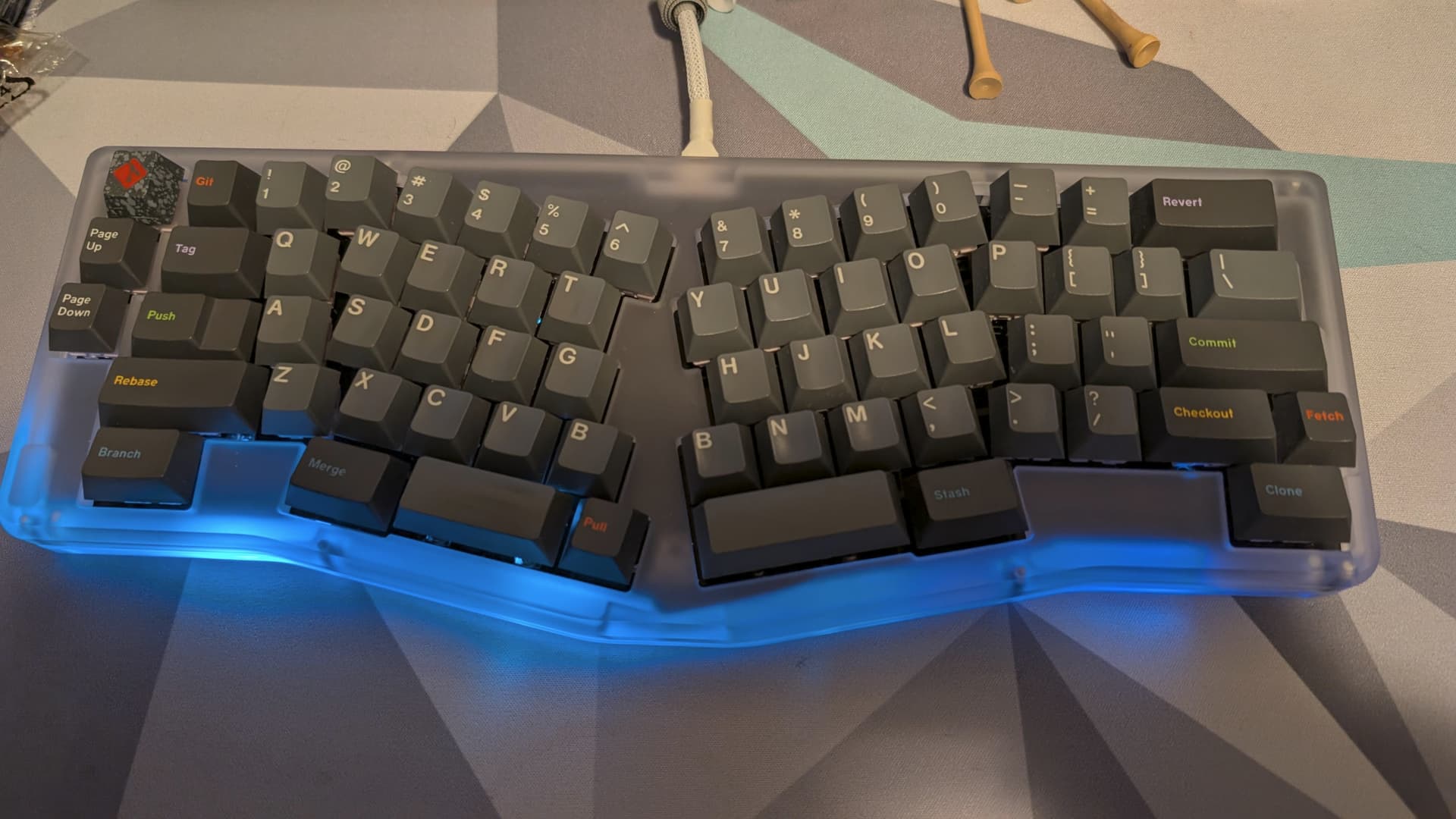 The inconsistent underglow is due to the foam that I found and threw in there to help hold the PCB in place, as dropping the plate meant not having the normal plate gaskets to sandwich between. I did find some gasket jackets lying around that I did use on the PCB to help and that combined with the foam does keep the PCB from moving at all; honestly, I can probably remove the bottom foam with the gasket jackets being used.
