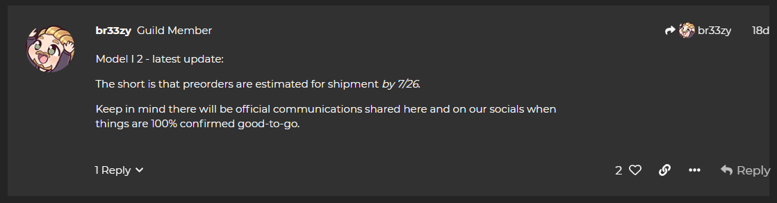 Not since this post that was 12 posts above this saying the estimate is 7/26 and “there will be official communications shared here and on our socials when things are 100% confirmed good to go”